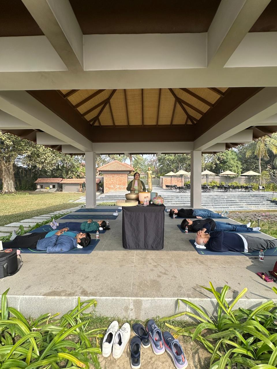 Guided by the calming resonance of singing bowls and gongs, participants immersed themselves in a deeply relaxing experience.